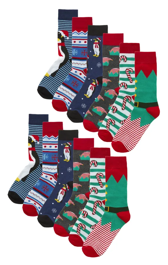 12 paar multiverpakking kerstsokken voor heren | Ademende katoenen kleurrijke nieuwigheidspatroon kerstsokken – Diverse