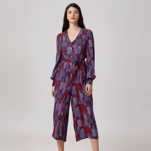 Jumpsuit met grafische print en V-hals