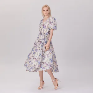 Fit-and-flare thee-organza-jurk met bloemenprint