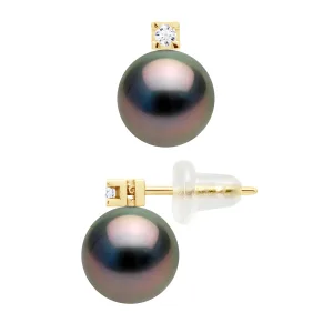 Oorbellen Tahitian parels rond 8-9 mm en 0,04 Cts Diamond Jewelry 18K geel goud