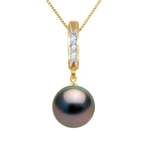 Ketting Diamonds 0,03 Cts Tahiti Pearl Ronde 9-10 mm Yellow Gold