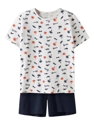Mey Pyjama kort ‘Bold Coral Stripes’ navy / oranje / wit