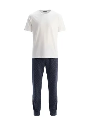 Men Plus Pyjama lang navy / wit