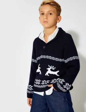 Jack & Jones Junior Sweatvest ‘JJCOLLEGE’ navy / wit