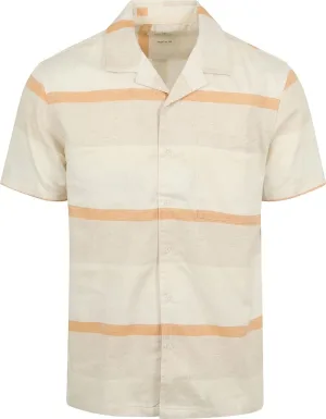 Anerkjendt Short Sleeve Overhemd Leo Linnen Streep Ecru