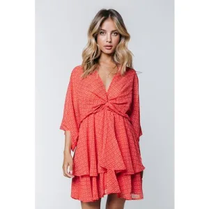 Colourful Rebel Mencia Small Geo Two Layer Mini Dress Bright Orange
