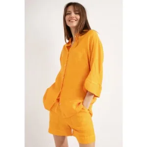 Cult Gaia Carlotta Blazer met bloemenkant in oranje viscose