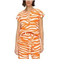 Dolce & Gabbana Oranje Zijde Gestreepte Korte Mouwen Witte Overhemd