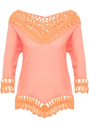 Wittchen dames crossbodytas, oranje reliëfleer, natuurlijk leer