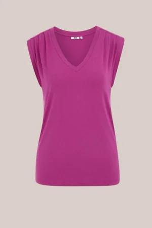 WE Fashion – Dames jersey singlet met plooidetail – Regular fit – Fuchsia – LENZING™ ECOVERO™ viscose –