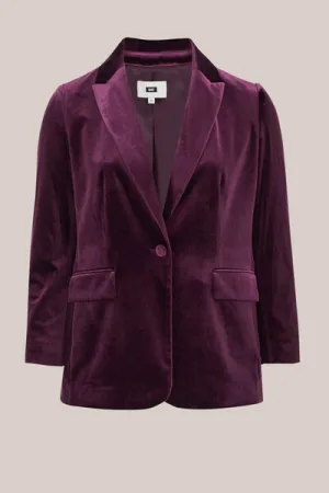 WE Fashion – Dames regular fit velvet blazer – Curve – Regular fit – Aubergine – Plus Size