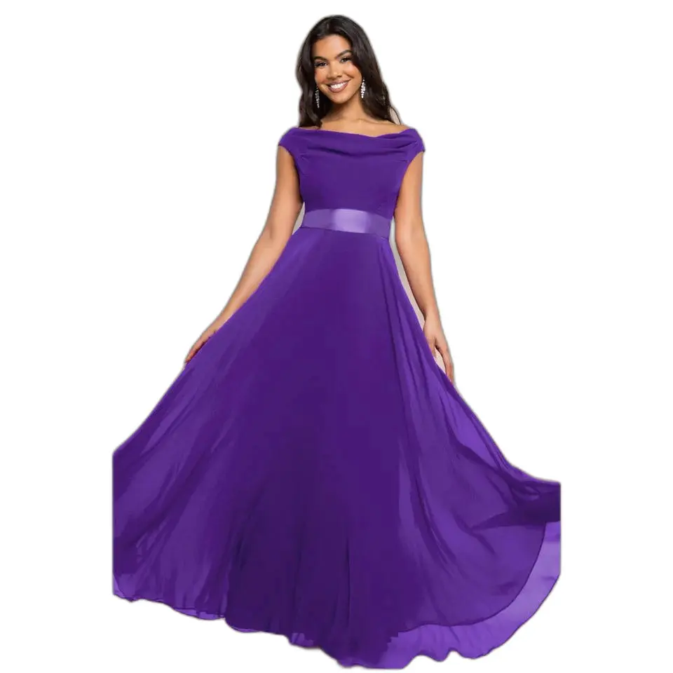 Zijdeachtige jurk met bénitierkraag dames Goddiva