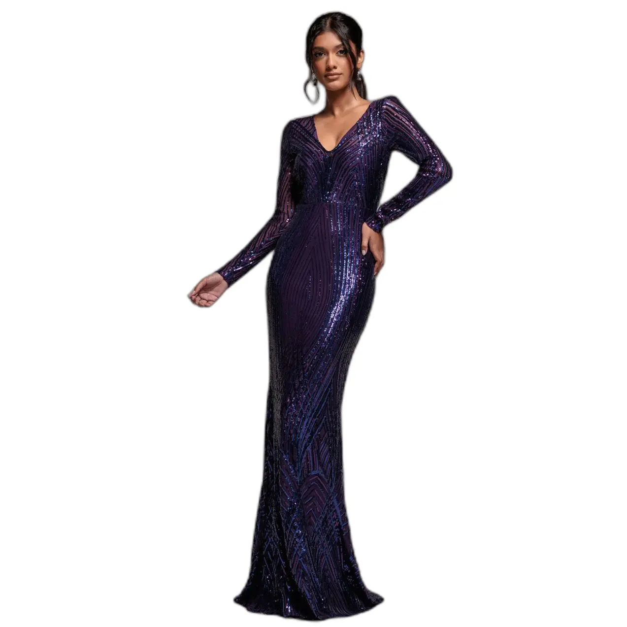 Damesjurk Goddiva Two Toned V Neck Sequin