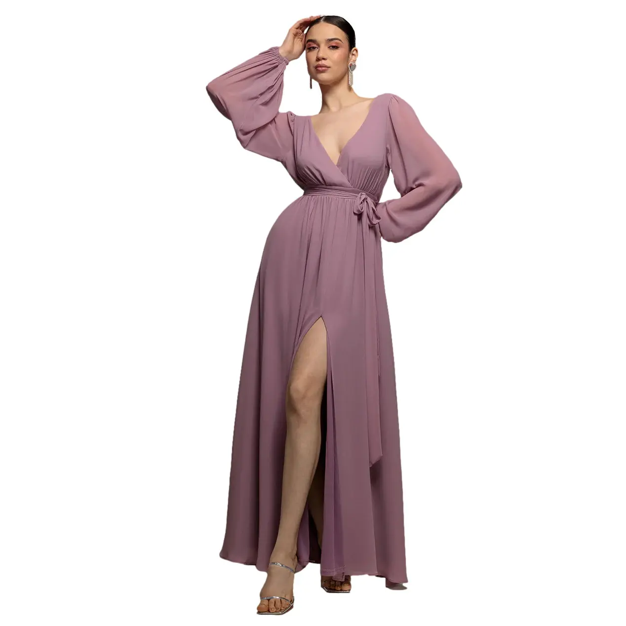Duurzame lange wikkeljurk van mousseline met split aan de voorkant vrouw Goddiva