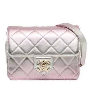 Tweedehands Mini Metallic Lamsleer Zoals Een Portemonnee Flap Tas