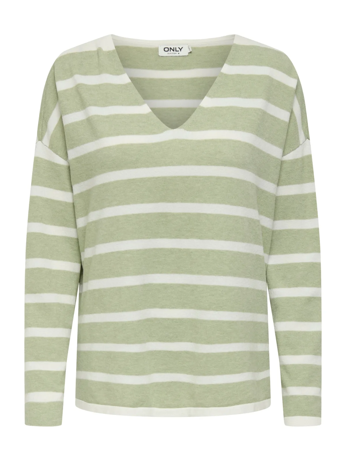 ONLY Trui ‘ONLAMALIO’ pastelgroen / wit