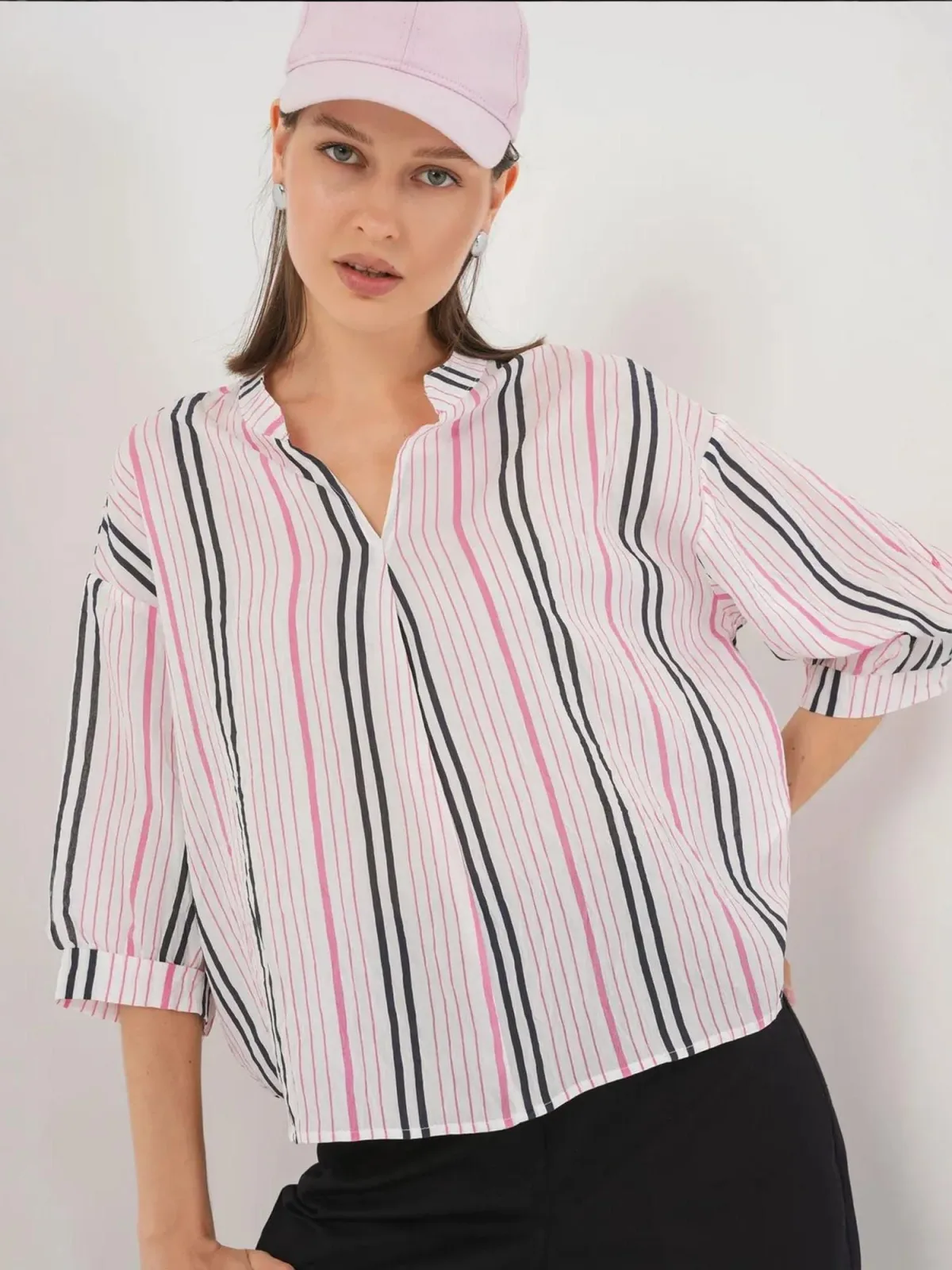 EDITED Shirt ‘Cindy’ pink / zwart / wit