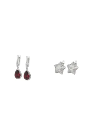 SOHI Oorbellen ‘Khadija’ robijnrood / zilver