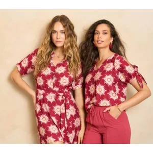 Smashed Lemon Maxi-jurk met rood en roze botanische print |