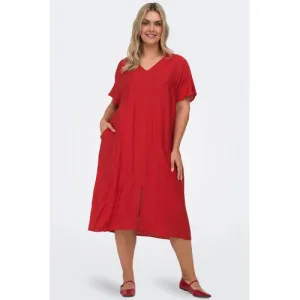 WE Fashion – Dames jersey jurk met print – Curve – Regular fit – Donkerrood – Viscose – Plus Size
