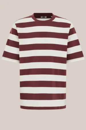 WE Fashion – Heren relaxed fit T-shirt met streep – Relaxed Fit – Donkerrood – Katoen –