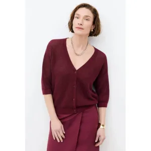 Ydence mouwloze top donkerrood rib gebreid