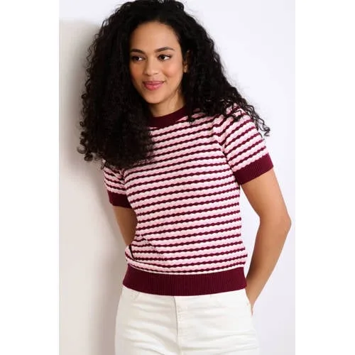 Anytime blouse met ingeweven patroon bordeauxrood
