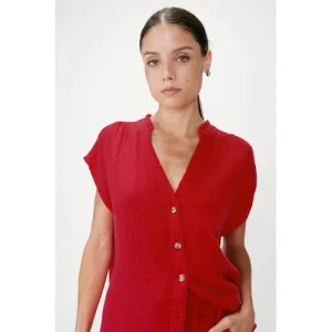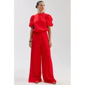 Raizzed wide leg casual broek donkerrood