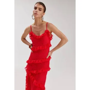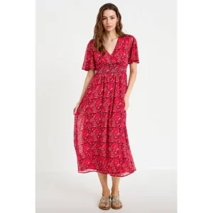 WE Fashion – Dames jersey jurk met print – Curve – Regular fit – Donkerrood – Viscose – Plus Size