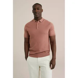 WE Fashion regular polo fijn gebreid oudroze