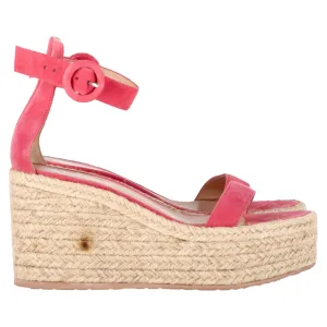 Gianvito Rossi Portofino Platform Wedge Espadrille Sandalen In Roze Suède