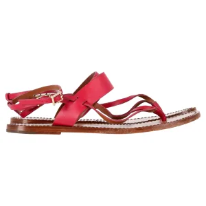 Valentino Garavani Flat Sandalen met T-knop en Enkelband in Roze Leer