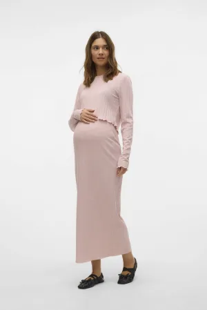 MAMALICIOUS zwangerschaps maxi rok fijn gebreid lichtroze
