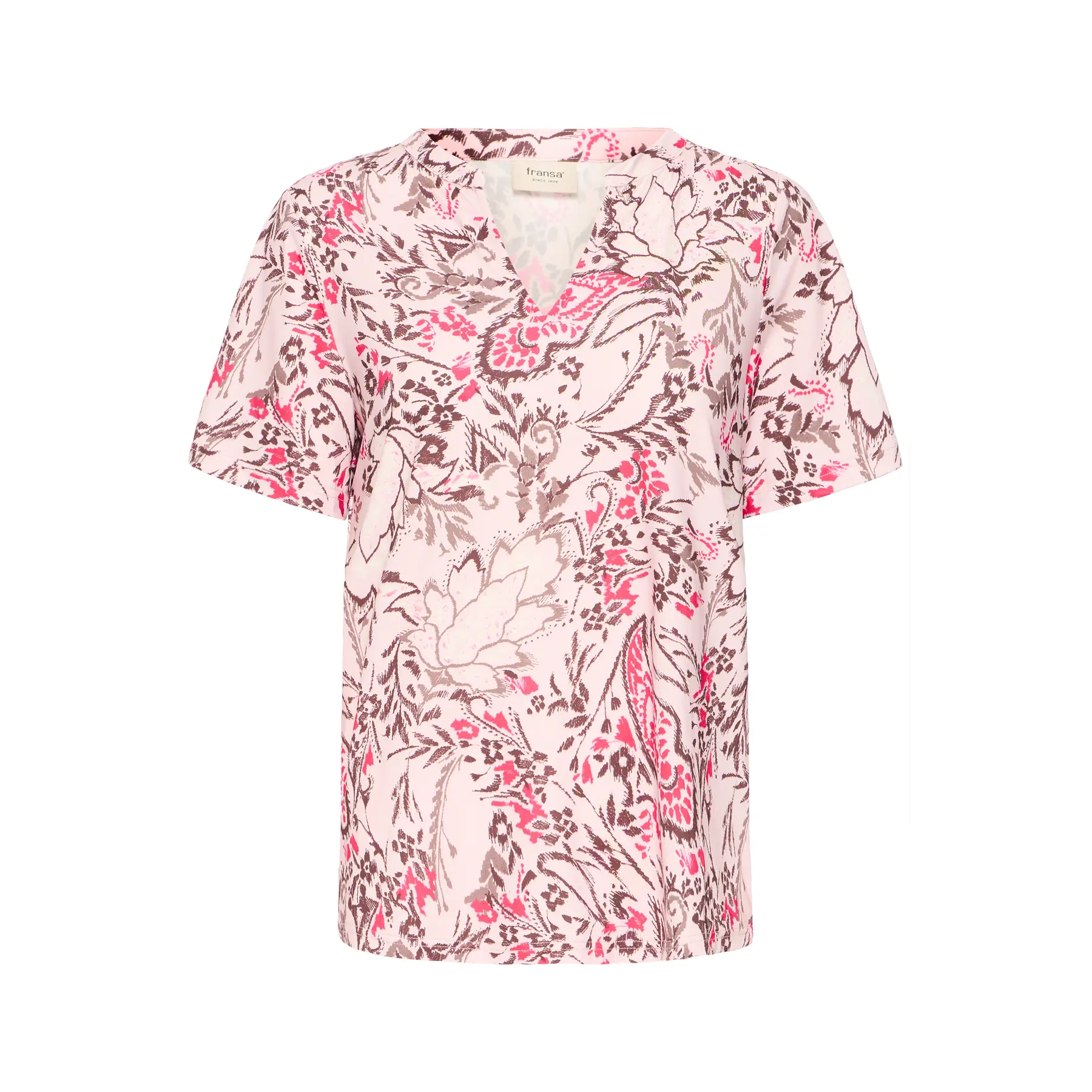 Rich & Royal Printed Blouse With Round Neck Rose Quartz
