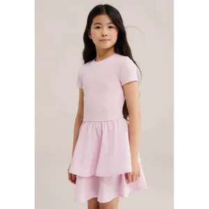 WE Fashion T-shirtjurk korte jurk rib gebreid lichtroze