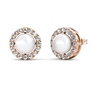 Oorbellen met parels in cirkelvorm – roségoud en kristal