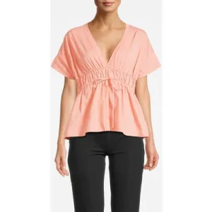 Summum Woman Top Cotton Single Jersey With Crispy Poplin Pink Salmon