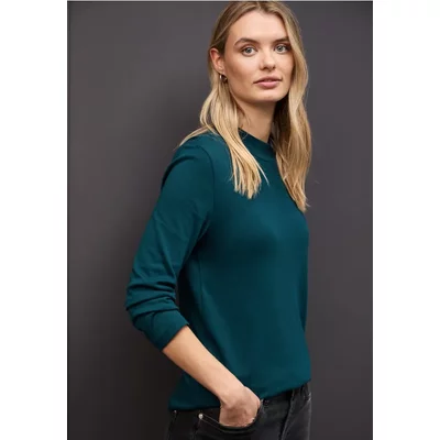 Street One Dames Basic shirt met coltrui in Turkoois