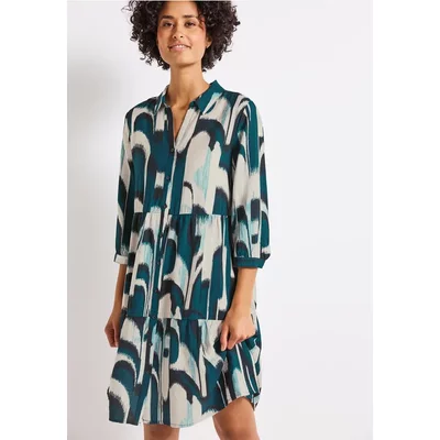 Street One Dames Gedessineerde volant jurk in Turkoois