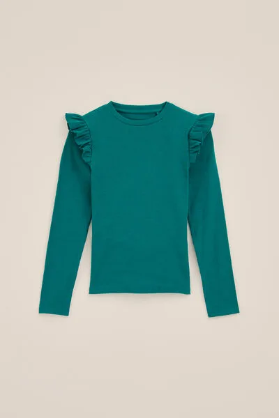 WE Fashion – Meisjes geribd T-shirt – Regular fit – Turkoois – Katoen –