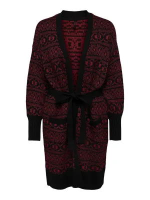 ONLY Gebreid vest ‘ONLSIGRUN’ wijnrood / zwart