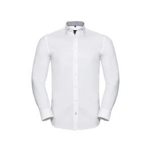 Russell Collection Heren Overhemd met lange mouwen in visgraatmotief (Wit/Zilver/Convoy Grijs)