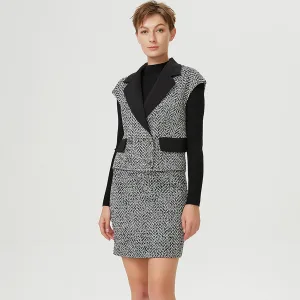 Tweedvest met contrasterende kraag