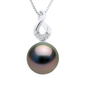 Hanger Acht Diamanten 0,03 Cts – Kwaliteit HSI – Wit Goud – Echte Gecultiveerde Tahitipearle Rond 9-9 mm