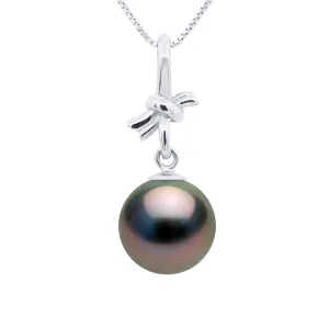 Hangertje KNOOP – Wit Goud – Echte Cultiveerde Tahiti Parel Rond 9-10 mm