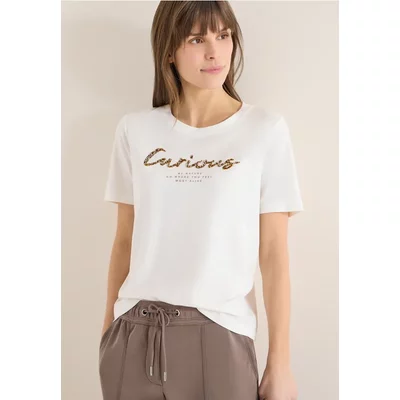 Cecil Dames Shirt met lange mouwen en tekst in Wit