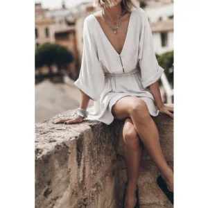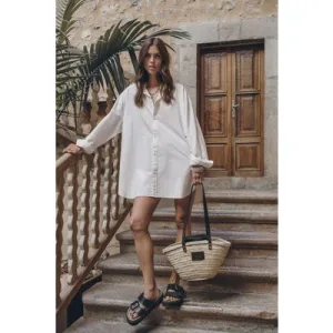 Mikuta The Light Sparkly Linen Twisted Tank Dress White