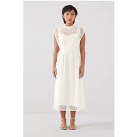 LK Bennett Laila Broderie Midi Dress White