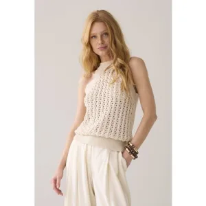 Summum Woman Halter Top Fancy Cotton Ajour Knit Ivory