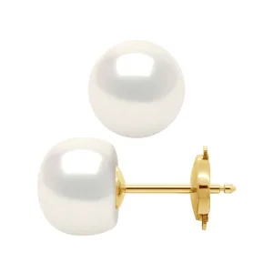 Oorbellen Gekweekte parels Zoetwater 9-10 mm System Security Natural White Yellow Gold